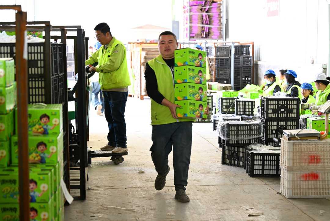 在山西临汾隰县野里垣(山西)农业科技股份有限公司,工人们正在分拣包装玉露香梨。张瑞强摄