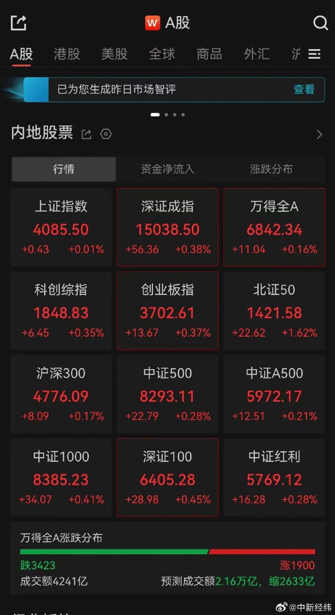 4月22日,A股三大指数早盘低开,随后集体翻红。截至发稿,男人添女荫道口高潮了上证指数涨0.01%,深证成指涨0.38%,创业板指涨0.37%。全市超3400只个股飘绿。